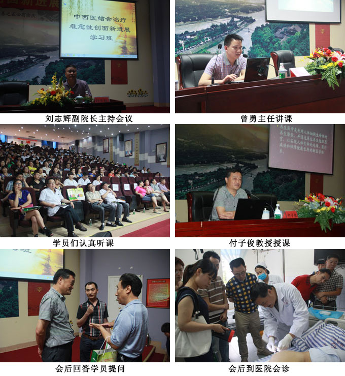 學(xué)習(xí)班舉行了簡(jiǎn)短隆重的開(kāi)幕式,燒傷創(chuàng)瘍?cè)偕t(yī)學(xué)和療法、國(guó)務(wù)院專家特殊津貼專家、中國(guó)中西醫(yī)結(jié)合學(xué)會(huì)燒傷專業(yè)委員會(huì)副主任委員付子俊教授、中國(guó)中西醫(yī)結(jié)合學(xué)會(huì)燒傷專業(yè)委員會(huì)青年委員曾勇主任、四川省中醫(yī)藥管理局醫(yī)政處李春處長(zhǎng)、四川省學(xué)會(huì)李成林秘書(shū)長(zhǎng)、邱衛(wèi)東主任、都江堰市中醫(yī)院劉志輝副院長(zhǎng)等專家、領(lǐng)導(dǎo)就坐主席臺(tái),劉志輝副院長(zhǎng)主持會(huì)議。四川省中醫(yī)藥管理局醫(yī)政處李春處長(zhǎng)講話,她對(duì)燒傷創(chuàng)瘍?cè)偕t(yī)學(xué)和療法近30年來(lái)臨床療效給予高度評(píng)價(jià),希望各級(jí)醫(yī)療機(jī)構(gòu)掌握好這項(xiàng)好學(xué)、好用、經(jīng)濟(jì)、安全和有效的臨床實(shí)用技術(shù),為患者更好服務(wù)。特別值得一提的是都江堰市中醫(yī)院李其林院長(zhǎng)專程從外地趕回參加了此次學(xué)習(xí)班。