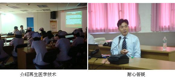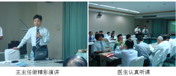 3月1日,我們應(yīng)邀前往位于曼谷市大型私立醫(yī)院Ramkumhang Hospital進(jìn)行全新的醫(yī)療開發(fā)工作。聽課醫(yī)生分別來自外科,內(nèi)科及整形外科,王洪生主任以再生醫(yī)療技術(shù)的臨床應(yīng)用為主題,生動地向聽課人員展示了再生醫(yī)學(xué)在燒傷、創(chuàng)瘍等多領(lǐng)域的臨床應(yīng)用,圖文并茂,醫(yī)生們認(rèn)真聽講,對MEBT/MEBO興趣較大。會后兩名重點(diǎn)醫(yī)生跟王主任就微粒皮種植術(shù)進(jìn)行進(jìn)一步交流,王主任針對問題都給與了耐心而專業(yè)的解答。