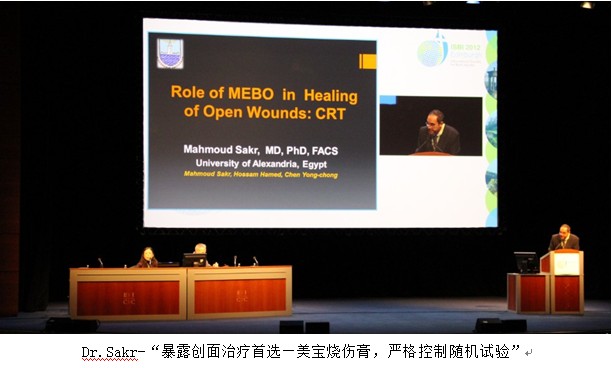 首先演講的是來(lái)自埃及知名燒傷治療專家、亞歷山大大學(xué)醫(yī)學(xué)院教授Prof.Mahmoud Sakr. Prof.Sakr以“Role of moist exposed burn ointment (MEBO) in healing of chronic diabetic foot ulcers: A controlled randomized trial”為題詳細(xì)介紹了自己在埃及近15年的燒傷再生醫(yī)學(xué)在糖尿病足治療應(yīng)用經(jīng)驗(yàn)。不僅有詳實(shí)的病例,更有嚴(yán)謹(jǐn)?shù)膶?duì)比實(shí)驗(yàn)和具體的數(shù)據(jù)分析,詳盡闡明美寶在“糖尿病足”這一世界難題的治療中所取得的卓越療效。并指出美寶是暴露創(chuàng)面治療的首選!他的精彩演講贏得了陣陣掌聲,大家踴躍就美寶的治療機(jī)理以及一些臨床問(wèn)題進(jìn)行提問(wèn),當(dāng)Prof.Sakr離開(kāi)講臺(tái)時(shí),仍然有提問(wèn)專家挽留他繼續(xù)答疑,無(wú)奈之下他只能笑著說(shuō):“看來(lái)我沒(méi)那么容易離開(kāi)了,我們可以隨時(shí)交流!”