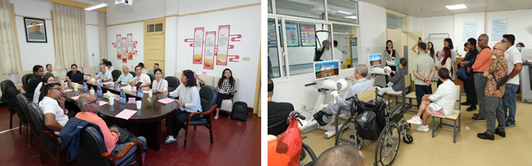 9月17日,代表團(tuán)訪問了湖南省人民醫(yī)院馬王堆院區(qū)康復(fù)醫(yī)學(xué)科。康復(fù)醫(yī)學(xué)科主任蔡華安、學(xué)科建設(shè)辦干事左盼對(duì)代表團(tuán)的到訪表示熱烈歡迎??祻?fù)醫(yī)學(xué)科三病區(qū)醫(yī)療組組長(zhǎng)黃靚博士系統(tǒng)介紹了再生醫(yī)療技術(shù)在治療壓瘡等慢性難愈合創(chuàng)面中的應(yīng)用優(yōu)勢(shì),并結(jié)合臨床案例,生動(dòng)展示了該項(xiàng)技術(shù)的顯著療效。分享結(jié)束后,代表團(tuán)走進(jìn)康復(fù)醫(yī)學(xué)科病房進(jìn)行實(shí)地參觀。代表團(tuán)成員對(duì)科室將創(chuàng)面管理與康復(fù)治療緊密結(jié)合的治療模式深表贊賞,紛紛表示回國(guó)后將借鑒這一理念,推動(dòng)創(chuàng)面管理與康復(fù)治療的融合,以提升患者的治療效果與體驗(yàn)。