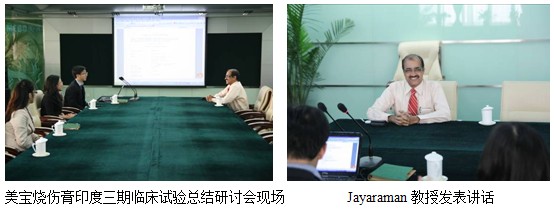 2012年2月27日,Jayaraman教授應(yīng)美寶國際市場集團印度分公司副總經(jīng)理張印邀請,出席了美寶燒傷膏印度三期臨床試驗總結(jié)研討會議并參觀訪問了美寶總部。
