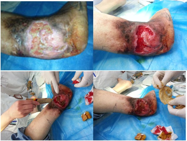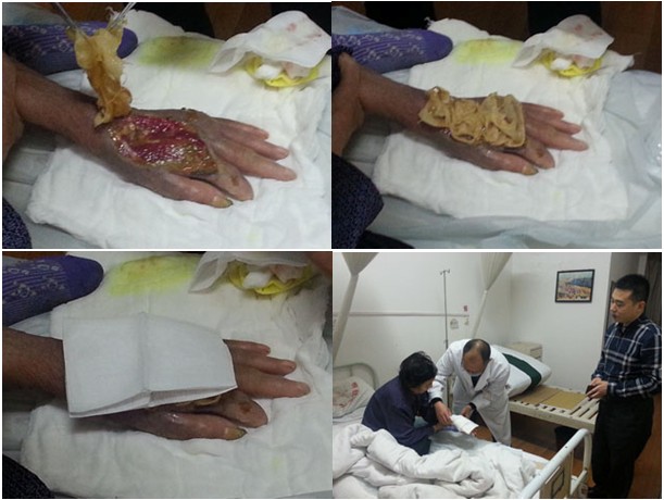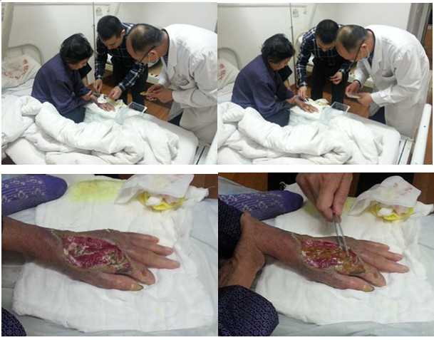 2013年3月26下午至27日上午,受北海市中醫(yī)院的邀請(qǐng),王洪生主任到該院普外、泌尿、燒傷創(chuàng)瘍外科進(jìn)行“再生療法在褥瘡、下肢靜脈曲張、糖尿病足等難愈性創(chuàng)面治療新進(jìn)展”專題臨床學(xué)術(shù)講座。并為該科收治的1例糖尿病足,4例老年4度潰瘍性褥瘡患者,1例70歲老年男性慢性潰瘍患者右下肢大隱靜脈曲張并骨髓炎致6年余不愈、廣西幾家最大醫(yī)院評(píng)定要截肢的患者進(jìn)行了會(huì)診和示范清創(chuàng)手術(shù)。26日下午4點(diǎn),在該醫(yī)院普外、泌尿、燒傷創(chuàng)瘍外科史國(guó)恩副主任醫(yī)師,蔡漢章副主任醫(yī)師及主管醫(yī)生等醫(yī)護(hù)人員的帶領(lǐng)下,對(duì)在該醫(yī)院就診和住院的上述患者進(jìn)行了會(huì)診和臨床指導(dǎo),結(jié)合會(huì)診對(duì)該科室的醫(yī)護(hù)人員進(jìn)行了再生復(fù)原療法在褥瘡,糖尿病足及脈管炎等難愈性創(chuàng)面臨床規(guī)范化應(yīng)用技術(shù)培訓(xùn),并強(qiáng)調(diào)了對(duì)創(chuàng)面徹底清創(chuàng)的重要性、結(jié)合再生療法治療才能解決創(chuàng)面愈合的難題。27號(hào)上午,王主任在1例因右下肢大隱靜脈曲張并骨髓炎6年余不愈的慢性潰瘍患者家屬的強(qiáng)烈邀請(qǐng)下,還親自帶領(lǐng)該科副主任等醫(yī)護(hù)人員給這患者做了示范清創(chuàng)手術(shù)。