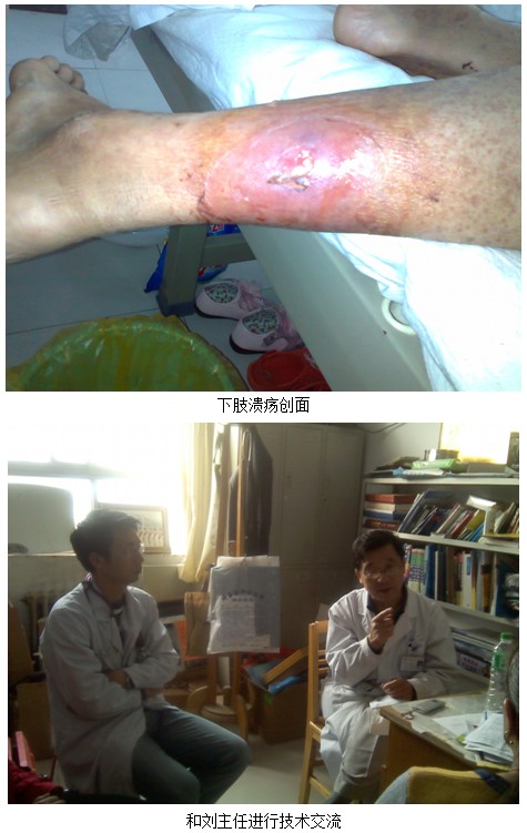 河南孟津縣南與古都洛陽(yáng)毗鄰,北臨滔滔黃河,與濟(jì)源市一橋相連。孟津地處山區(qū),位于三角地帶,交通不便,各種信息相對(duì)較閉塞。2012年5月3號(hào),中國(guó)中西醫(yī)結(jié)合學(xué)會(huì)燒傷專(zhuān)業(yè)委員會(huì)委員、北京美寶燒傷創(chuàng)瘍研究所臨床部專(zhuān)家陳全喜主任與區(qū)域經(jīng)理李帥一同來(lái)到孟津縣中醫(yī)院,在縣醫(yī)院受到周?chē)懿】浦魅蝿殎?lái)的熱情接待。通過(guò)交流,主任劉寶來(lái)了解了國(guó)際美寶集團(tuán)、了解了皮膚原位再生醫(yī)療技術(shù)發(fā)明人徐榮祥教授。午飯后,主任劉寶來(lái)邀請(qǐng)陳全喜主任會(huì)診一位長(zhǎng)期住院患者(下肢動(dòng)脈狹窄性脈管炎誘發(fā)的潰瘍創(chuàng)面,久經(jīng)治療,20年不愈)。會(huì)診后,陳主任建議用皮膚原位再生醫(yī)療技術(shù)治療。