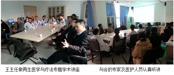 2012年11月28日,應(yīng)該院外一、外二病區(qū)梅禮強主任、徐偉主任的邀請,當(dāng)日下午3點,中國中西醫(yī)結(jié)合學(xué)會燒傷專業(yè)委員會常務(wù)兼秘書、《中國燒傷創(chuàng)瘍雜志》副總編輯、北京美寶燒傷創(chuàng)瘍研究所副所長、第二臨床研究部主任王洪生研究員來到該院,為二兩個科室的醫(yī)護人員做了一場生動的學(xué)術(shù)報告。王洪生研究員先以“再生醫(yī)療技術(shù)在增生性瘢痕防治新進展”為題先做一個精彩的演講,緊接著應(yīng)科室徐偉主任的邀請,又做了“再生醫(yī)療技術(shù)在糖尿病足、褥瘡、骨外露、鋼板外露、手術(shù)切口感染、難愈合創(chuàng)面及大面積深度燒傷的臨床規(guī)范化應(yīng)用”精彩演講,會場鴉雀無聲,在場的醫(yī)護人員們都為之震撼,會議一直持續(xù)到晚上6點多。會議結(jié)束后,醫(yī)護人員都不舍得離場,提出了很多臨床中遇到的問題,王洪生主任都耐心的解答。