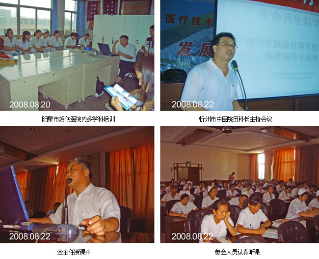 2008年8月22日,金黨軍主任和靳偉經理又在忻州市中醫(yī)院對全院的臨床醫(yī)護人員做了“燒傷皮膚原位再生醫(yī)療技術學習培訓”,參會人員140多人。忻州市中醫(yī)院是綜合實力較強的三級乙等醫(yī)院,該院以前只在小面積病人方面應用燒傷皮膚原位再生醫(yī)療技術,經過這次培訓,該院醫(yī)教科田科長說,爭取在以后工作中能夠多次合作,在條件允許時候我們把燒傷和創(chuàng)瘍、創(chuàng)傷、潰瘍病人單獨成立一個特色???。會后金黨軍主任對外科、皮膚醫(yī)護人員提出的問題做了詳細的講解,大家表示通過這次講座受益匪淺,增長了不少新的知識,真正了解了我國皮膚原位再生醫(yī)學的發(fā)展,感謝徐榮祥教授研究創(chuàng)立了造?;颊叩暮眉夹g,感謝中西醫(yī)結合學會燒傷專業(yè)委員會金主任帶來的新知識。并希望中國中西醫(yī)學會燒傷專業(yè)委員會和北京美寶燒傷創(chuàng)瘍研究所繼續(xù)給予支持幫助,進一步加強合作。通過講座,學習交流等形式把徐榮祥教授創(chuàng)立的生命再生科學及皮膚原位再生修復理論融會貫通傳播到每個醫(yī)護人員中,從思想上,概念上認識再生醫(yī)療技術的創(chuàng)立與發(fā)展,用最適宜基層應用的技術造福廣大燒傷、創(chuàng)瘍,創(chuàng)傷、潰瘍等多發(fā)病常見病患者。促進中西醫(yī)臨床結合的更快發(fā)展。