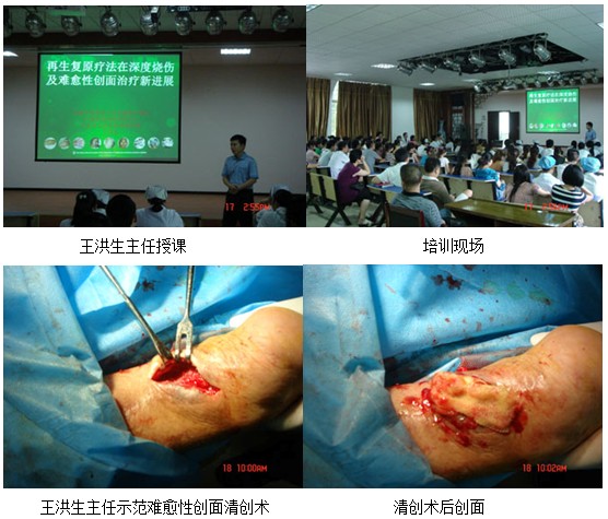 當(dāng)日下午三點(diǎn),由該院外科蘇主任致歡迎辭并宣布培訓(xùn)開(kāi)始,由王洪生主任以“再生復(fù)原療法在深度燒傷及難愈合創(chuàng)面治療新進(jìn)展”為題做了專題講座,來(lái)自該院各科室100余名醫(yī)護(hù)人員參加了此次培訓(xùn),王洪生主任在介紹我國(guó)著名生命科學(xué)家、醫(yī)學(xué)家徐榮祥教授近年來(lái)在人體再生復(fù)原科學(xué)領(lǐng)域取得的重大臨床與實(shí)驗(yàn)研究成果后,從再生醫(yī)學(xué)的理論到該技術(shù)治療燒傷、褥瘡、糖尿病足、各種難愈合創(chuàng)面、疤痕防治及各科室運(yùn)用的臨床治療規(guī)范做了詳細(xì)的講解,參會(huì)人員均被再生醫(yī)學(xué)神奇的治療效果所震驚。