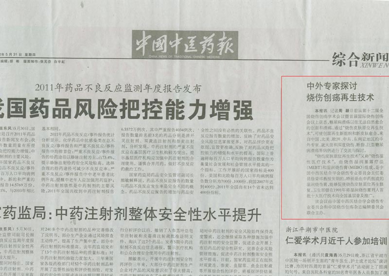 中國中醫(yī)報:中外專家討論燒傷創(chuàng)瘍再生技術(shù)