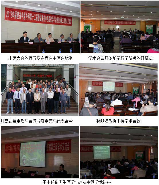 2012年11月10日上午8時30分,學(xué)術(shù)會議正式開始,來自北京、上海、福建省中醫(yī)藥大學(xué)、福建省人民醫(yī)院及福州市、泉州市、廈門市、寧德市、三明市、龍巖市、南安等福建省7個地級市、武警福建總隊醫(yī)院、福建省煤礦中心醫(yī)院、武警710部隊醫(yī)院等30余家國內(nèi)、省內(nèi)各級大學(xué)、科研院所、各級醫(yī)療單位的學(xué)者、專家、相關(guān)專業(yè)的醫(yī)護(hù)人員60余人參加了本次會議。會議開始前,舉行了簡短的開幕式,開幕式由龍巖市中醫(yī)醫(yī)院副院長蔣涼涼主持,福建省中醫(yī)藥學(xué)會外科分會名譽(yù)主任委員、福建省中醫(yī)藥大學(xué)附屬人民醫(yī)院原副院長孫郎清教授、福建省中醫(yī)藥大學(xué)附屬人民醫(yī)院中西醫(yī)結(jié)合外科主任、衛(wèi)生部中醫(yī)外科重點(diǎn)學(xué)科、國家中醫(yī)院管理局中醫(yī)外科重點(diǎn)??茖W(xué)科帶頭人、福建省中西醫(yī)結(jié)合學(xué)會燒傷病分會主任委員黃小賓教授,中國中西醫(yī)結(jié)合學(xué)會燒傷專業(yè)委員會常委兼秘書、中國燒傷創(chuàng)瘍雜志副總編輯、北京美寶燒傷創(chuàng)瘍研究所副所長、臨床研究部主任王洪生研究員,上海中醫(yī)藥大學(xué)附屬龍華醫(yī)院中醫(yī)外科主任、博士生導(dǎo)師、醫(yī)學(xué)博士闕華發(fā)教授,福建省龍巖市中醫(yī)藥學(xué)會副會長、福建省龍巖市中醫(yī)醫(yī)院院長陳志強(qiáng)等領(lǐng)導(dǎo)及專家應(yīng)邀出席了開幕式并在主席臺就坐。開幕式結(jié)束后與會領(lǐng)導(dǎo)及專家與參加會議的代表合影留念后大會學(xué)術(shù)交流正式開始。