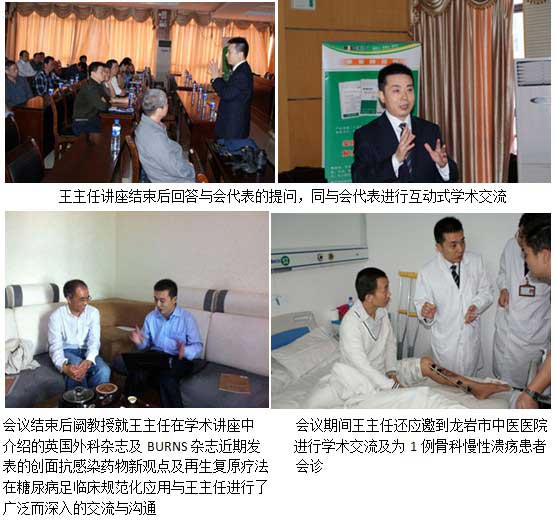 中國中西醫(yī)結(jié)合學(xué)會燒傷專業(yè)委員會常委兼秘書、《中國燒傷創(chuàng)瘍雜志》副總編輯、北京美寶燒傷創(chuàng)瘍研究所副所長、臨床研究部主任王洪生研究員應(yīng)邀首先以“燒傷皮膚原位再生復(fù)原技術(shù)在特重度燒傷創(chuàng)面及系統(tǒng)治療要點(diǎn)”為題進(jìn)行了專題講座,講座結(jié)束后王主任還與與會代表進(jìn)行了互動式交流,一一回答代表的提問;接下來上海中醫(yī)藥大學(xué)附屬龍華醫(yī)院中醫(yī)外科主任闕華發(fā)教授以“糖尿病性足潰瘍的中醫(yī)治療”為題進(jìn)行了學(xué)術(shù)交流;隨后龍巖市中醫(yī)院副院長蔣涼涼、龍巖市中醫(yī)院皮膚科主任黃鴻健、福建省人民醫(yī)院中西醫(yī)結(jié)合外科主任秘書王世軍依次進(jìn)行了大會學(xué)術(shù)交流。