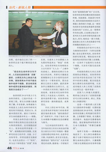 與后來他的所有研究一樣,當(dāng)年他在創(chuàng)立有史以來在治療燒傷方面完全不同于傳統(tǒng)的一整套全新的理論和技術(shù)時,也是爭議不斷,風(fēng)波頻仍,甚至官司連連。隨著他的“濕性療法”從技術(shù)到理論的成熟,隨著他一手研制開發(fā)的“濕潤燒傷膏”的廣泛應(yīng)用,徐榮祥的發(fā)明在解決燒傷創(chuàng)面的疼痛、創(chuàng)面感染、創(chuàng)面進(jìn)行性壞死、燒傷創(chuàng)面的疤痕愈合這四大難題上取得重大突破,這一獨創(chuàng)性的醫(yī)學(xué)及科研成果最終受到國際國內(nèi)的廣泛承認(rèn)。這一艱難而傳奇的過程,正是奠定他后來一系列有關(guān)生命科學(xué)研究的源頭和起點。因為,他的這一重大突破,就是建立在對人體皮膚器官中組織細(xì)胞的重新認(rèn)識上——
