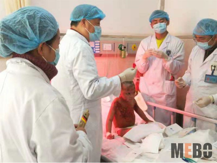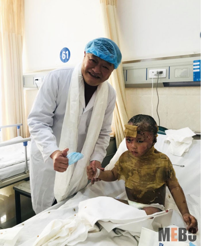 為了更好的配合付教授換藥,嘎登小朋友一直保持固定姿勢,一動不動。在給小嘎登換藥的過程中,小嘎登全程沒有喊痛、沒有留一滴眼淚。為了表示對付教授的感謝,嘎登小朋友還給付教授豎起了大拇指,為付教授及再生醫(yī)療技術(shù)點贊。