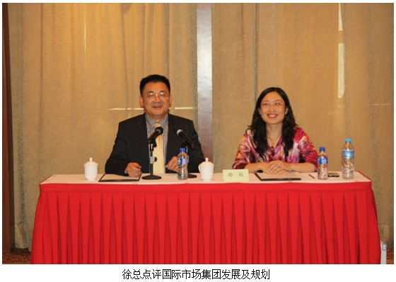 徐總說道,國(guó)際市場(chǎng)集團(tuán)三年來飛速發(fā)展,同時(shí)每一名員工都伴隨著企業(yè)取得了長(zhǎng)足的成長(zhǎng),擔(dān)負(fù)起除美國(guó)外整個(gè)海外國(guó)際市場(chǎng)的經(jīng)營(yíng)發(fā)展重任。北京總部連同海外多家分公司、組織機(jī)構(gòu),如今已經(jīng)成為大集團(tuán)下最為重要的集團(tuán)之一。徐總的點(diǎn)評(píng)讓整個(gè)集團(tuán)的員工士氣高漲,信心倍增,相信只要我們能夠堅(jiān)定不移地遵從徐總的“大科學(xué)、大經(jīng)濟(jì)、大發(fā)展”戰(zhàn)略決策,團(tuán)結(jié)一致,奮力拼搏,2012年國(guó)際市場(chǎng)集團(tuán)將與大集團(tuán)一同發(fā)展得越來越好,飛的越來越高!