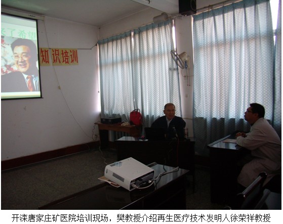 2012年11月1日下午,樊教授應(yīng)邀來到唐山市遷西縣中醫(yī)院進(jìn)行再生醫(yī)療技術(shù)的院內(nèi)培訓(xùn),50多該院醫(yī)護(hù)人員接受了培訓(xùn);2012年11月6日下午,樊教授應(yīng)邀來到了唐山市古冶區(qū)開灤唐家莊礦醫(yī)院進(jìn)行再生醫(yī)療技術(shù)的培訓(xùn),開灤唐家莊礦醫(yī)院是開灤醫(yī)療集團(tuán)下屬的一個二甲醫(yī)院,參加培訓(xùn)的醫(yī)護(hù)人員有70人次;2012年11月7日下午,樊教授應(yīng)邀來到豐潤區(qū)人民醫(yī)院進(jìn)行再生醫(yī)療技術(shù)的院內(nèi)培訓(xùn),豐潤區(qū)人民醫(yī)院是當(dāng)?shù)匾?guī)模最大,最具影響力的二甲醫(yī)院,參加培訓(xùn)的醫(yī)護(hù)人員有70人次;2012年11月8日下午,樊教授應(yīng)邀來到秦皇島市骨科醫(yī)院開展再生醫(yī)療技術(shù)的院內(nèi)培訓(xùn),秦皇島市骨科醫(yī)院是秦皇島市唯一一家市級??漆t(yī)院,對骨科,骨傷,外傷的治療方面有相當(dāng)?shù)穆曌u(yù)。參加培訓(xùn)的醫(yī)護(hù)人員有40人次。