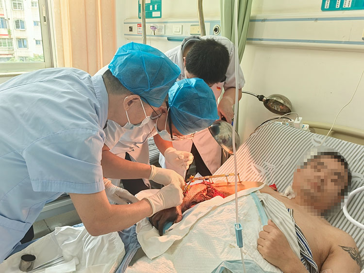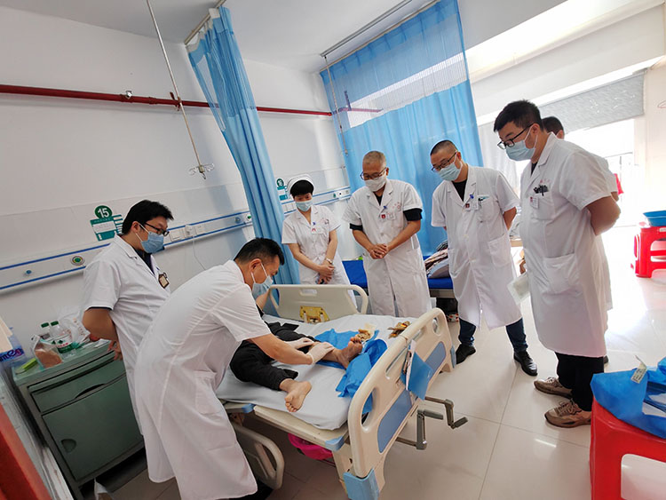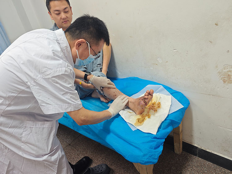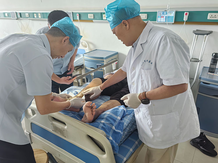 2025年6月25日,應(yīng)湖北宜昌國藥葛洲壩中心醫(yī)院三峽院區(qū)及宜昌夷陵弘仁康復(fù)醫(yī)院邀請,《中國燒傷創(chuàng)瘍雜志》編委、燒傷創(chuàng)瘍再生醫(yī)療技術(shù)臨床專家張強(qiáng),會診了五例慢性創(chuàng)面患者。通過換藥講解處理細(xì)節(jié),解惑答疑,受到醫(yī)護(hù)工作者及家屬的一致好評!