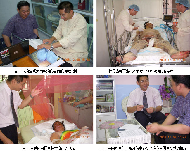 3、12月10日上午,應(yīng)邀到馬尼拉市東大街醫(yī)院(政府醫(yī)院,600病床)燒傷中心進行技術(shù)交流和培訓,培訓后該院馬上采用皮膚再生技術(shù)治療住院的燒傷患者。