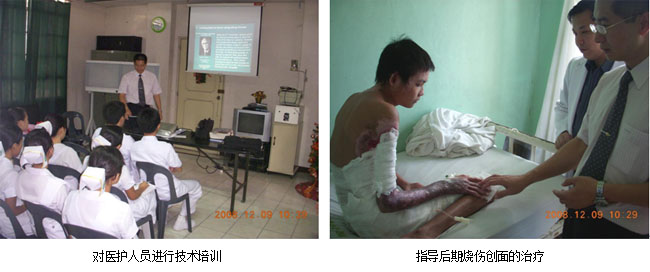 演講結(jié)束后,PGH(菲律賓中醫(yī)院)、Jose R. Reyes Medical Hospital(菲律賓政府醫(yī)院)和馬尼拉市東大街醫(yī)院分別邀請陳主任到他們醫(yī)院的燒傷中心進行學術(shù)交流和技術(shù)指導,收到了較好的效果: