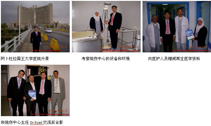 上午10時,陳教授一行應(yīng)邀到阿卜杜拉國王大學(xué)醫(yī)院燒傷中心進行考察,并與醫(yī)護人員進行學(xué)術(shù)交流。該院是當(dāng)?shù)刈畲蟮木C合教學(xué)醫(yī)院,有800多張病床,其中燒傷中心有3間ICU病房和7間普通燒傷病房,每年收治的燒傷病人約150例,其中70%的患者采用MEBT/MEBO治療,取得了很不錯的臨床效果,不過大面積燒傷病人還沒有采用再生醫(yī)學(xué)技術(shù)治療,通過這次的交流、討論在一定程度上增強了大家在下階段應(yīng)用再生醫(yī)學(xué)技術(shù)治療大面積燒傷的信心。