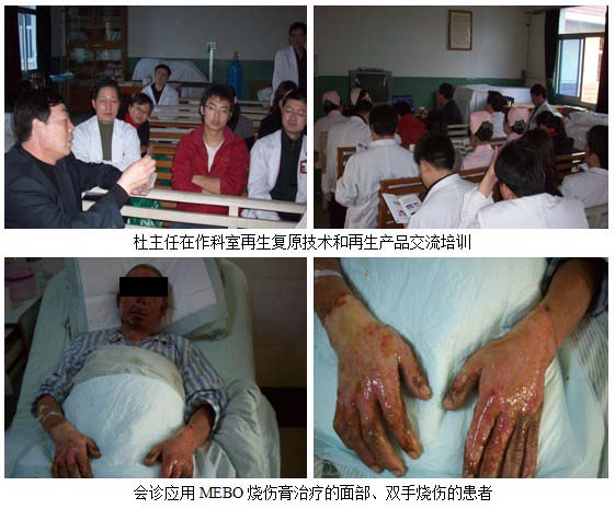 分別與以上科室主任進行了再生復(fù)原技術(shù)的交流,介紹了與再生復(fù)原技術(shù)配套的再生產(chǎn)品。重點介紹了新一代醫(yī)用功能性敷料美寶創(chuàng)瘍貼獨特的網(wǎng)中網(wǎng)結(jié)構(gòu)和三隔離-呼吸作用及創(chuàng)瘍貼治療創(chuàng)瘍的概念。再生醫(yī)學的“創(chuàng)瘍”指一切創(chuàng)傷和潰瘍的總和。強調(diào)“創(chuàng)”和“瘍”的兩個概念?!皠?chuàng)”表示開發(fā)性創(chuàng)傷,如:擦傷、撕脫傷、開放性骨折、刀傷等?!隘儭敝搁_放性創(chuàng)面發(fā)生的感染和潰瘍。