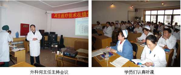 學(xué)術(shù)交流會議由該院醫(yī)務(wù)科組織,外科何主任主持。參加會議的科室有骨科、普外科、燒傷科、婦產(chǎn)科、內(nèi)科等相關(guān)科室的主任和醫(yī)務(wù)人員,共計(jì)50余人。樊教授在授課時(shí),通過多媒體介紹了徐榮祥教授發(fā)明的皮膚再生復(fù)原醫(yī)療技術(shù)在世界生命科學(xué)前沿的地位及目前的科學(xué)成果,并通過大量臨床典型的病例圖片,講解了不同病例的不同治療方法及換藥處理,本次授課內(nèi)容涵蓋了多個(gè)科室再生醫(yī)療技術(shù)的應(yīng)用,其中包括燒傷燙傷的治療,創(chuàng)傷創(chuàng)面的治療,褥瘡及慢性潰瘍的治療,糖尿病足的治療等。與會的醫(yī)生聽后感覺耳目一新,受益非淺。他們對再生醫(yī)療技術(shù)治愈的棘手病例更是稱贊不已,大家互相交流臨床經(jīng)驗(yàn),現(xiàn)場學(xué)習(xí)氣氛非常濃郁。此次培訓(xùn)班圓滿結(jié)束。