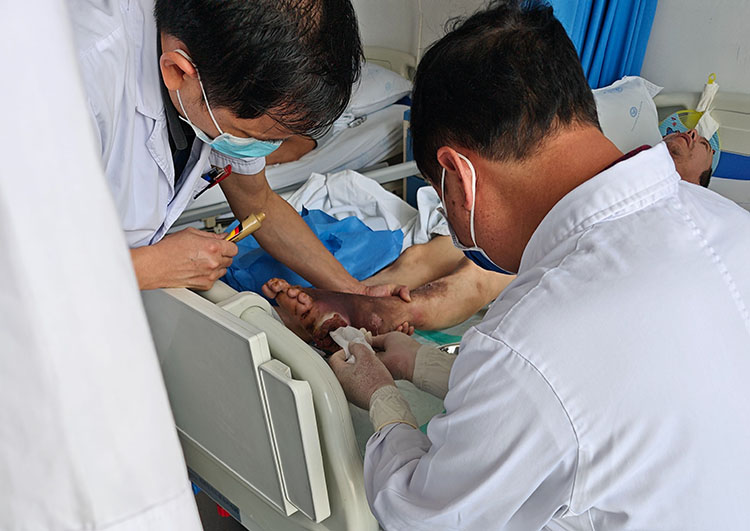 5月27日,《中國燒傷創(chuàng)瘍雜志》常務編委、燒傷創(chuàng)瘍再生醫(yī)療技術臨床專家趙瑞慶,應南京南鋼醫(yī)院(南京德馭康養(yǎng)中心)邀請,在外科病區(qū)會診了五例慢創(chuàng)患者(糖足2例、壓瘡2例、下肢脈管炎1例)。在討論環(huán)節(jié)分別釆取一病一策的治療方法,最后將最新治療糖尿病足改善血液循環(huán)的方法傳授于當?shù)蒯t(yī)務人員,大家表示受益匪淺。