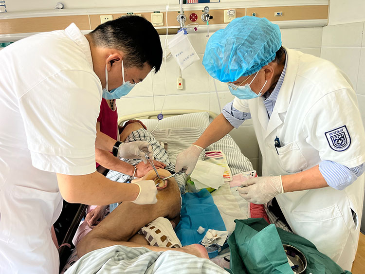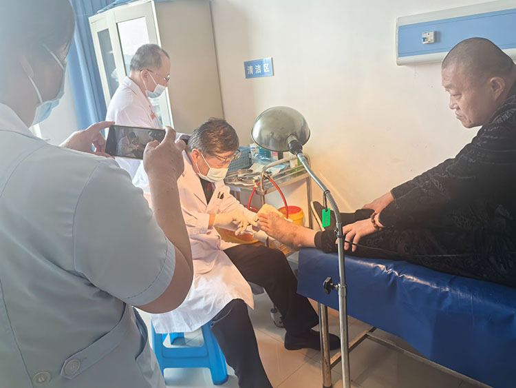 2025年5月24日,《中國燒傷創(chuàng)瘍雜志》常務編委、燒傷創(chuàng)瘍再生醫(yī)療技術臨床專家趙瑞慶,應邀在南通海門區(qū)二院,會診指導了9例慢創(chuàng)患者的臨床工作(壓瘡3例、糖尿病足潰瘍2例、外傷經(jīng)久未愈合創(chuàng)面2例、膝關節(jié)外傷負壓治療創(chuàng)面1例、骶尾部使用抗生素骨水泥創(chuàng)面1例),在討論環(huán)節(jié)提出一病一策的治療方案,受到當?shù)蒯t(yī)務人員的稱贊!