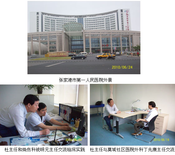 中國中西醫(yī)結(jié)合學(xué)會燒傷專業(yè)委員會常委、中國燒傷創(chuàng)瘍雜志常務(wù)編委、北京燒傷創(chuàng)瘍研究所臨床部杜福勤主任和學(xué)會駐江蘇辦事處周園園同志于2010年6月18日~25日,一同走訪了無錫市濱湖區(qū)人民醫(yī)院外科、錫山區(qū)東亭社區(qū)醫(yī)院、宜興市人民醫(yī)院燒傷科、蘇州市蘇大附屬醫(yī)院整形科、蘇州市立醫(yī)院北區(qū)(蘇州市三院)燒傷科、常熟市莫城社區(qū)醫(yī)院、張家港市第一人民醫(yī)院燒傷科,同時(shí)走訪了兩家醫(yī)藥公司和五家終端大藥房。