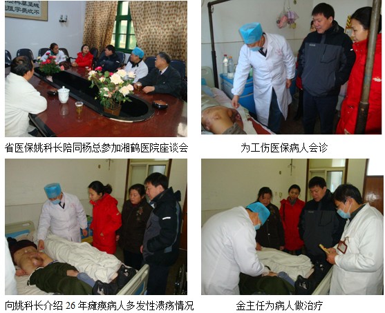09年12月16日在湖南省勞動與社會保障廳、湖南省工傷醫(yī)保局姚科長陪同下,美寶國際集團總裁楊智斌,中國燒傷科技中心臨床醫(yī)療部主任金黨軍同湖南地方美寶總裁汪波,區(qū)域經理侯效東一行對博愛工傷康復醫(yī)院,湘鶴職工醫(yī)院進行走訪。重點是對老工傷患者中出現(xiàn)的燒傷愈后防疤和功能康復,褥瘡、潰瘍等難以愈合的創(chuàng)面應用美寶系列產品使用再生醫(yī)療技術進行治療。達到解除患者痛苦,提高患者生活質量,降低醫(yī)療費用的目的。隨著安全生產要求的不斷提高,燒傷作為工傷傷害的發(fā)病率在不斷降低,我們根據湖南的具體情況,在工傷康復領域加大開發(fā)力度。這方面的患者主要包括燒傷疤痕創(chuàng)面、創(chuàng)瘍、褥瘡、經久不愈合創(chuàng)面。中國燒傷創(chuàng)瘍科技中心臨床部金黨軍主任親臨醫(yī)療第一線指導,為部分患者進行創(chuàng)面處理,比較直觀的給當?shù)蒯t(yī)務人員進行臨床指導。詳細介紹了燒傷皮膚原位再生復原技術在多學科的應用,美寶濕潤燒傷膏和美寶瘡瘍貼在褥瘡、潰瘍、糖尿病足及各種創(chuàng)傷、久治不愈殘余創(chuàng)面的不同時期的臨床規(guī)范應用。換藥期間醫(yī)務人員積極提問,如為什么不能用消毒劑清理創(chuàng)面,油紗條(引流條)的制作。金主任都耐心的一一解答,帶領醫(yī)務人員結合臨床給各類患者進行規(guī)范示范換藥。達到了再生醫(yī)療技術臨床培訓示范指導相結合的目的。受到院領導和臨床一線醫(yī)務人員的好評。
