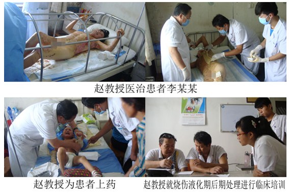 北京燒傷創(chuàng)瘍研究所趙瑞慶教授第一時間趕到了該醫(yī)院,在院領(lǐng)導的協(xié)調(diào)下,積極參與了搶救工作。截止到8月20日,使用再生復原技術(shù)治療兩例大面積燒傷病人,安全度過了休克期、感染期,平穩(wěn)過渡到創(chuàng)面修復階段。趙瑞慶教授利用星期天早會間隙時間,就如何正確認識創(chuàng)面液化物,用創(chuàng)瘍貼保護創(chuàng)面軟薄膜、如何減少使用抗生素用量進行了專題培訓。趙教授在菏澤創(chuàng)傷醫(yī)院搶救病人期間和該院鄭連榮、楊鳳民院長就北京燒傷創(chuàng)瘍研究所與菏澤創(chuàng)傷醫(yī)院持久長期技術(shù)合作達成了一致意見。