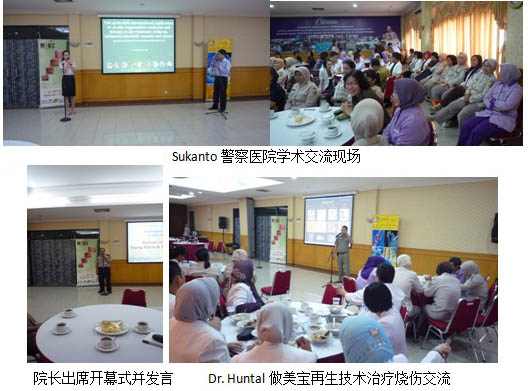 在Sukanto警察醫(yī)院的醫(yī)療開(kāi)發(fā)中,該院的Dr. Huntal醫(yī)生正在籌備燒傷科的建立,改醫(yī)生曾經(jīng)來(lái)中國(guó)廣州接受再生技術(shù)的培訓(xùn),回國(guó)后一直致力于燒傷及其他創(chuàng)面的再生應(yīng)用治療,與王洪生教授也有緊密的聯(lián)系;此次王教授的來(lái)訪(fǎng),更進(jìn)一步加深了雙方的關(guān)系,增進(jìn)了交流,更重要的是為該醫(yī)生在燒傷科建立的工作起到了至關(guān)重要的推動(dòng)作用,從正面進(jìn)一步增強(qiáng)了各醫(yī)務(wù)人員的信心。這次該院院長(zhǎng)及各科骨干醫(yī)生均參加了學(xué)術(shù)交流,并開(kāi)展了模擬病例討論,王洪生教授針對(duì)再生醫(yī)學(xué)療法及大面積燒傷,創(chuàng)傷、潰瘍的臨床應(yīng)用做了系統(tǒng)且深入淺出的介紹及展示,聽(tīng)眾反應(yīng)熱烈,甚至超過(guò)了預(yù)期的效果。