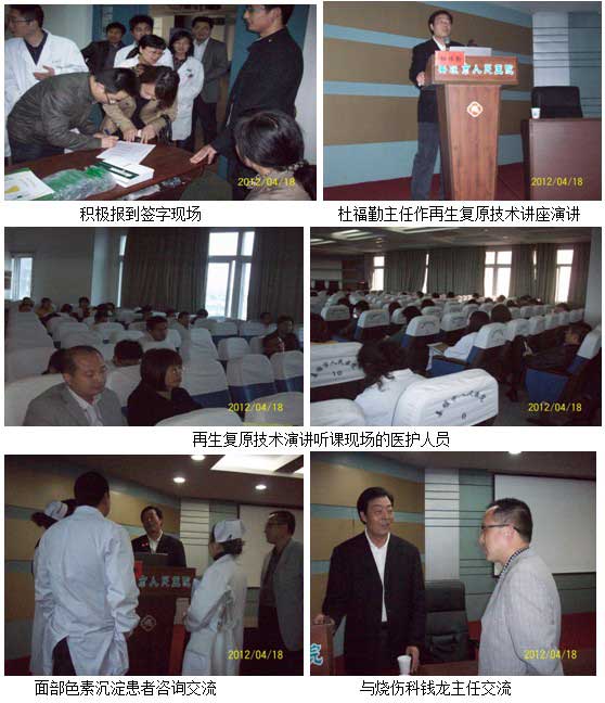 2012年4月18日中國中西醫(yī)結(jié)合學(xué)會燒傷專業(yè)委員會委員、北京美寶燒傷創(chuàng)瘍研究所臨床部研究員,燒傷創(chuàng)瘍專家杜福勤主任日夜兼程從銅陵凌晨三點趕往蘇北姜堰市人民醫(yī)院,下午兩點半與提前趕到的學(xué)會駐蘇北區(qū)劉恒主任同時到達(dá)會場。姜堰市人民醫(yī)院醫(yī)教科陳惠平科長主持會議,參加學(xué)習(xí)班的有外科、燒傷科、骨科、內(nèi)分泌科等科室100余人參加學(xué)習(xí)。杜主任以“再生復(fù)原技術(shù)在燒傷創(chuàng)傷潰瘍創(chuàng)面臨床治療新進(jìn)展”為題作了二小時的演講,利用大量臨床資料介紹了著名再生復(fù)原技術(shù)創(chuàng)立者、再生復(fù)原科學(xué)家、燒傷創(chuàng)瘍醫(yī)學(xué)專家徐榮祥教授創(chuàng)立再生復(fù)原技術(shù)的歷程,國內(nèi)外推廣實踐再生復(fù)原技術(shù)的現(xiàn)狀。重點介紹再生復(fù)原技術(shù)專用產(chǎn)品美寶濕潤燒傷膏、美寶創(chuàng)瘍貼、美寶疤痕軟膏的臨床功能、臨床療效、治療效果、注意事項。深受與會者的好評與歡迎,達(dá)到了深入推廣再生復(fù)原技術(shù)地目的。