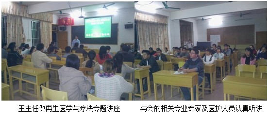 晚上7:30,在該院外科主任龔應科主持下,學術(shù)講座在醫(yī)院的會議室正式開始。該院院長何東鎮(zhèn)帶領醫(yī)院的醫(yī)護人員30多人到會聆聽王主任的專題講座。在專題學術(shù)講座中,王主任結(jié)合了大量的臨床病例圖片,針對不同深度的燒傷創(chuàng)面及各類難愈性創(chuàng)傷、潰瘍創(chuàng)面的規(guī)范化處理方法與技巧、注意事項等進行了細致地講解。在會的醫(yī)護人員看到大量真實的臨床病例資料圖片后,都被再生醫(yī)療技術(shù)良好的治療效果所震撼與折服。此次講座深受會者的歡迎,再生復原技術(shù)為醫(yī)護人員在臨床上提供了一條新的治療思路,開闊了醫(yī)護工作者的視野,增長了新的知識。