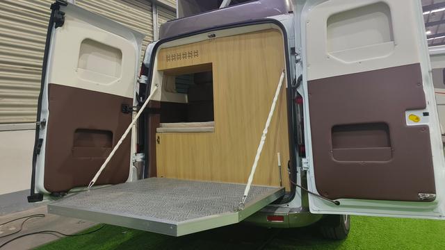 車輛尾部后門打開還有一張釣魚臺,我們自己試了一下,承重400斤是完全沒有問題的,在一個風(fēng)景好點的地方,打開釣魚臺,我們坐在上面看看書曬曬太陽其實是挺舒服,這里也說是戶外的小陽臺,只是沒有遮風(fēng)擋雨的,如果有一個好的釣魚位置,我們的確可以坐在上面釣魚,之所以這樣說,經(jīng)常釣魚的朋友肯定是懂的。